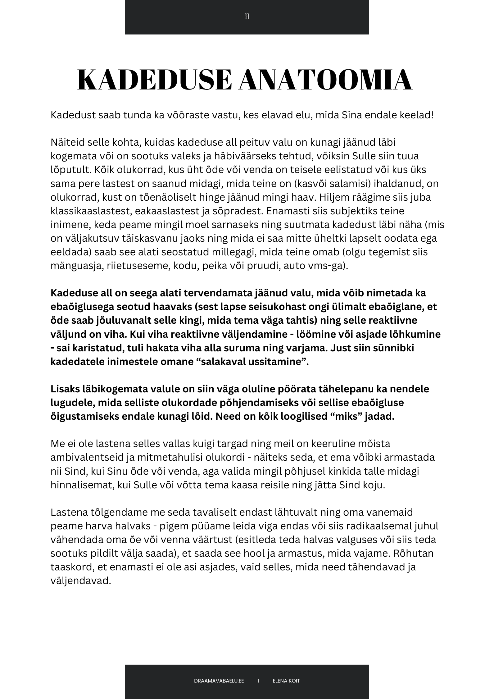➣ Kuidas kadedus mürgitab kõike, mida see puudutab - ennekõike Sind ennast ning Sinu kõige lähedasemaid suhteid.
