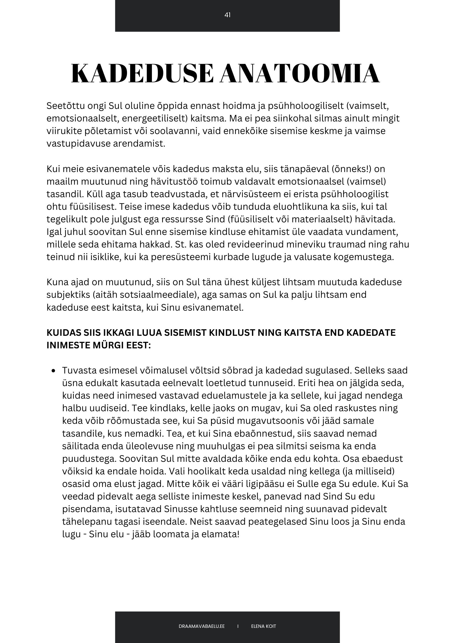 ➣ Kuidas kasvatada sisemist keset, et jääda puutumatuks kadedate inimeste mürgist ning sellest lihtsalt keelduda.